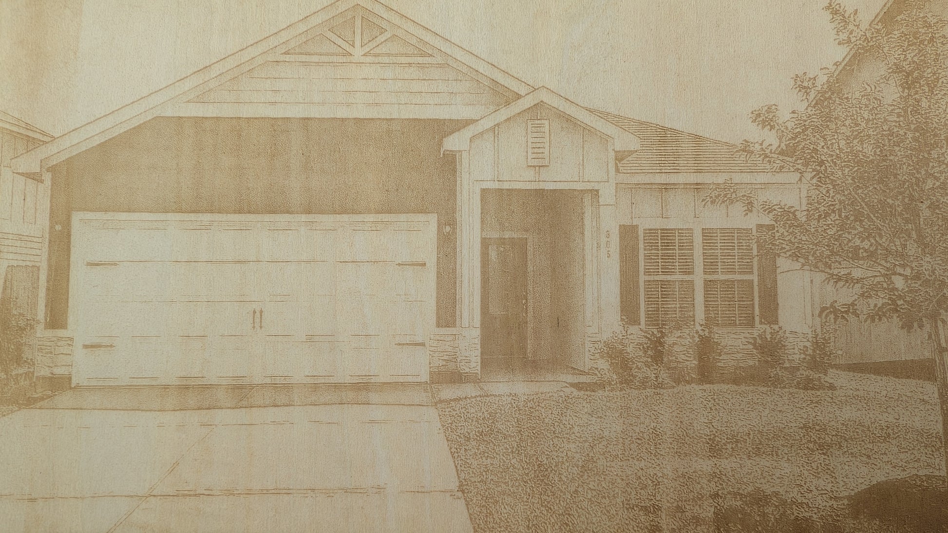 Custom Laser-Engraved Photo of Their Home: A beautiful, personalized touch that captures the essence of their new space. This high-quality, custom photo is engraved with precision, creating a timeless keepsake to cherish for years to come.