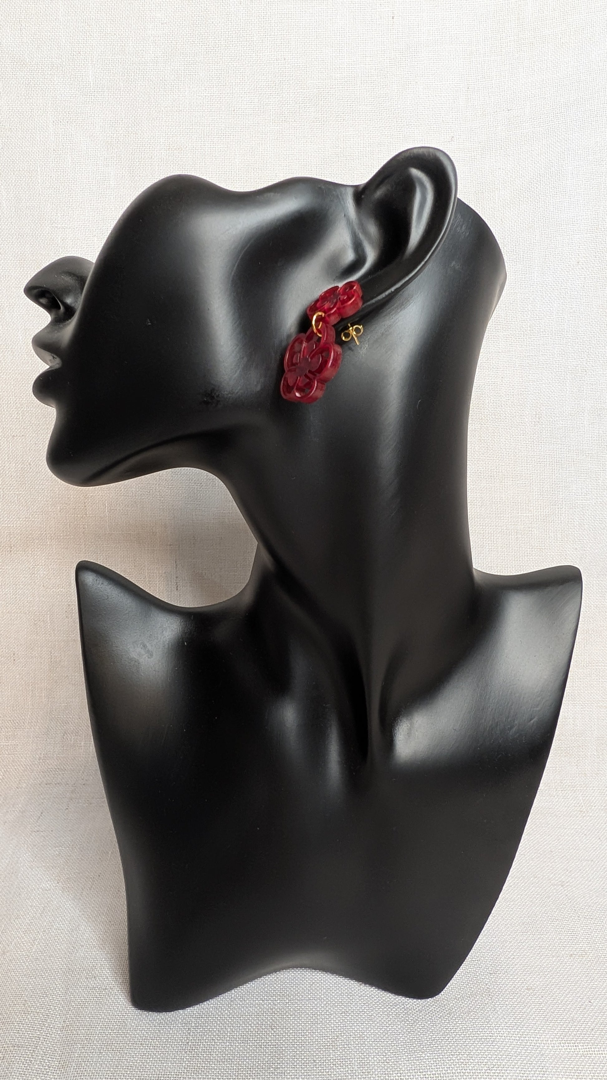 Design: Double flower drop (stud + dangle)